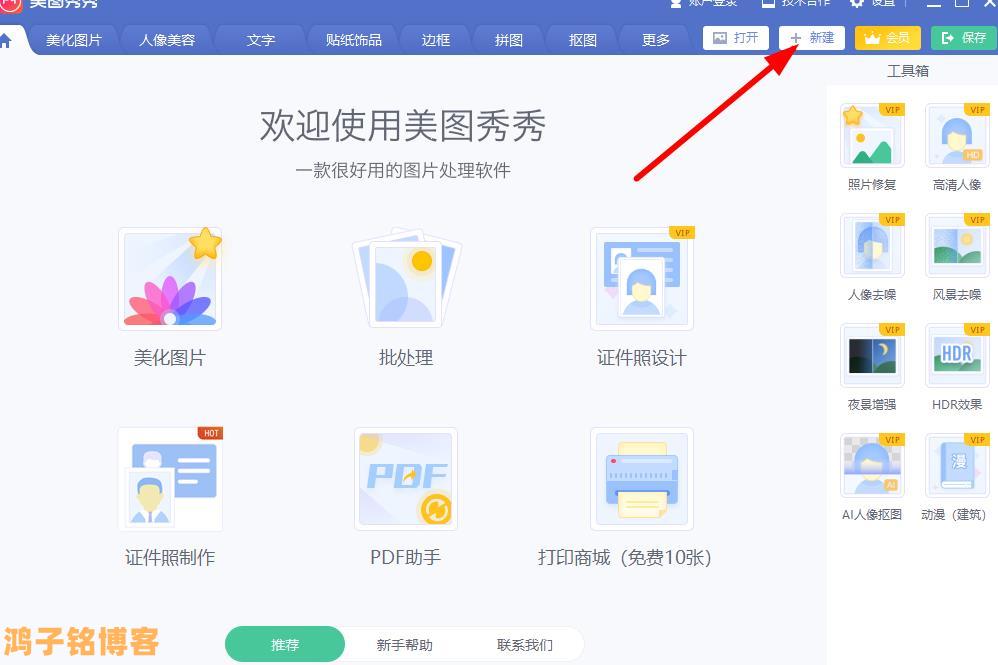 1:首先我们直接打开美图秀秀,新建,