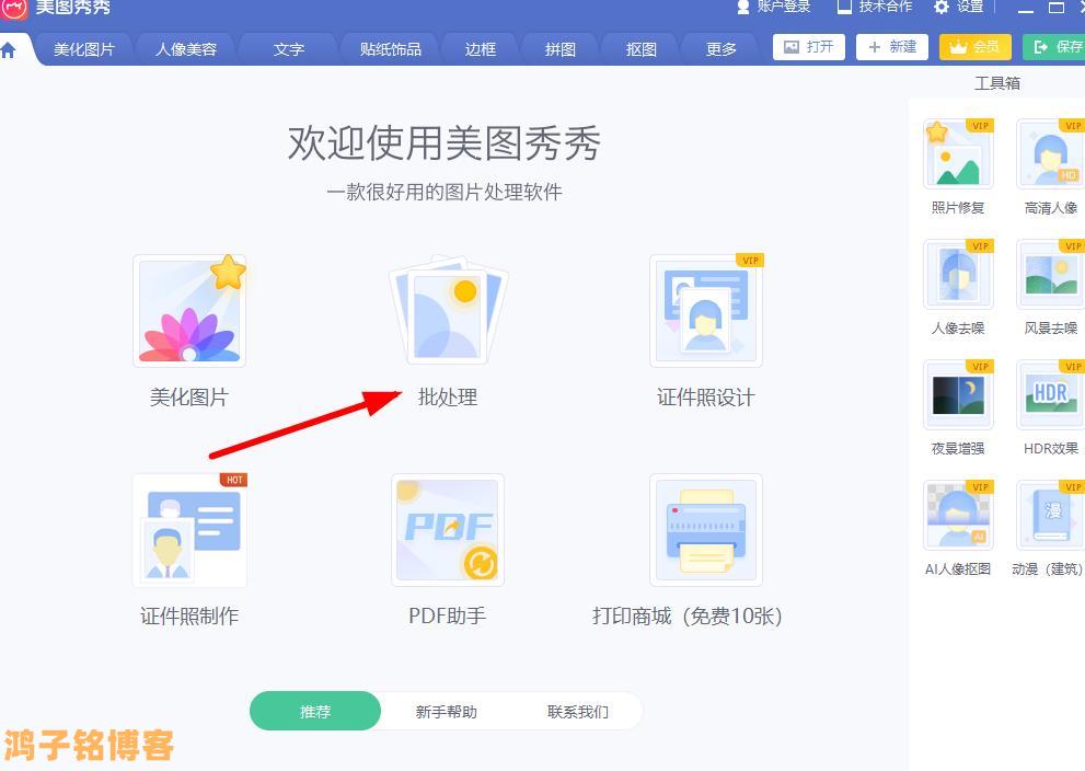 这里有一个批处理,我们就要下载这个批处理,它这个好像就跟美图秀秀两个好像是分开一样。